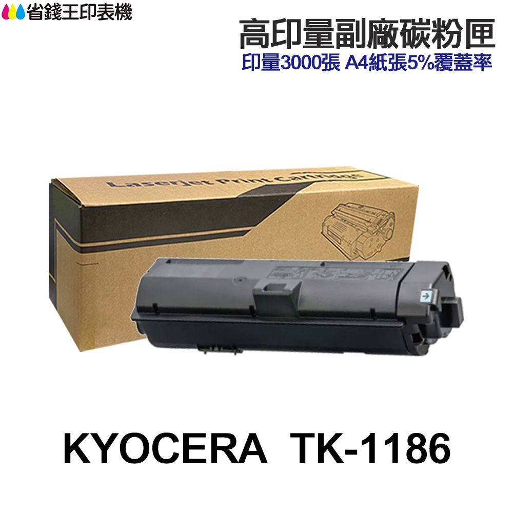 Kyocera TK-1186 高印量副廠碳粉匣 【A4紙張 5%覆蓋率 最高印量 3000張】