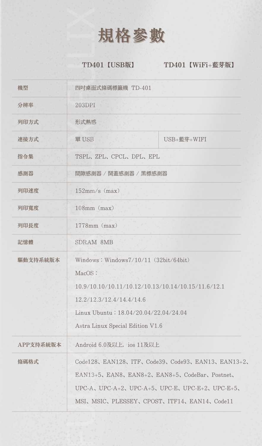 ② TD-401 熱感標籤機【WiFi+藍芽版】