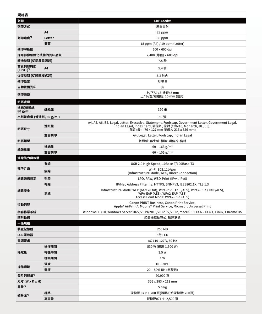 ① LBP122dw【含原廠碳粉匣】