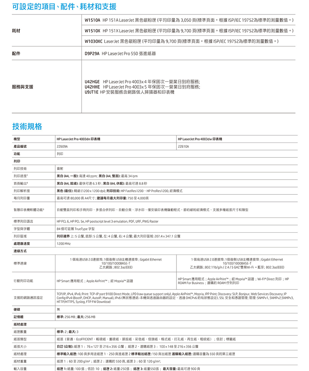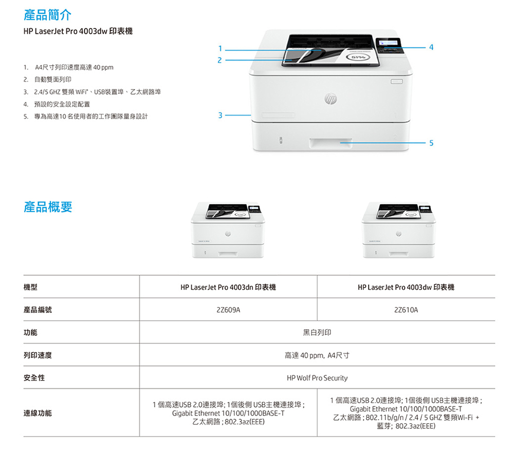 HP LaserJet Pro 4003dn 黑白雷射雙面印表機