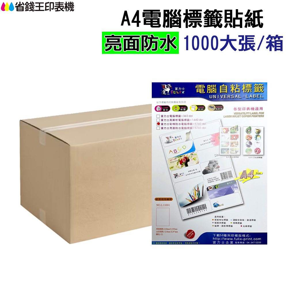 亮面防水材質|一包25大張 40包 共1000張|A4大小|規格切割請參考圖示