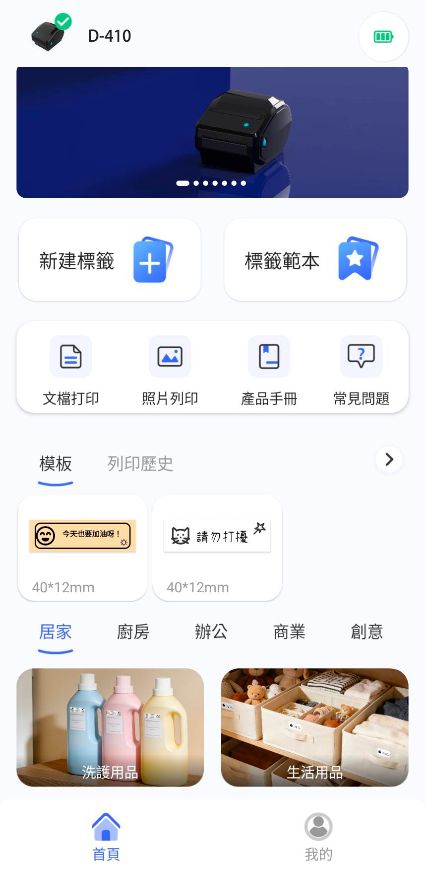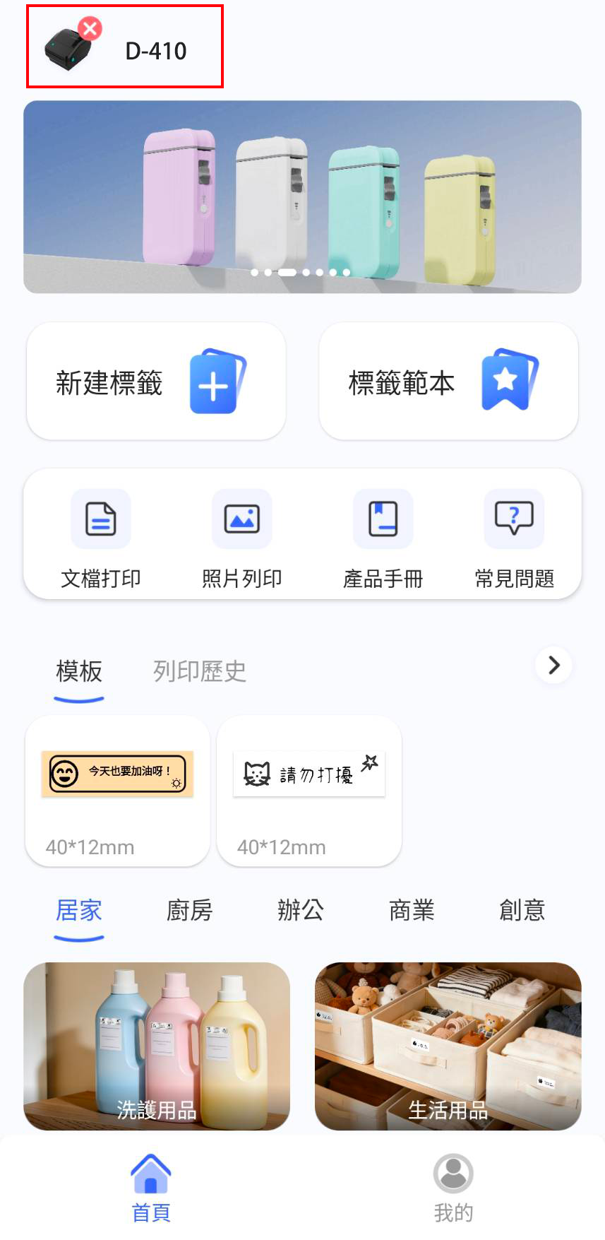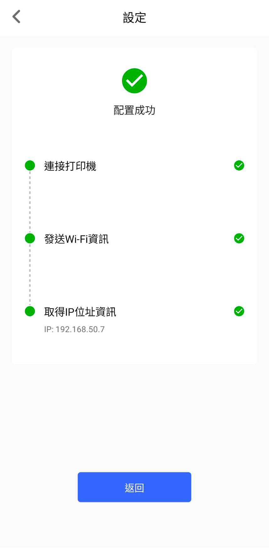 頁面回到首頁,此時左上角的印表機圖示會變更為綠色打勾,代表藍芽配對成功。