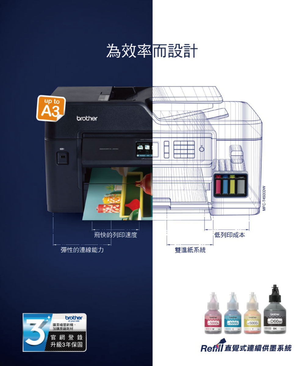 ※原廠墨水型號:黑 BTD60BK + 彩 BT5000C/M/Y
