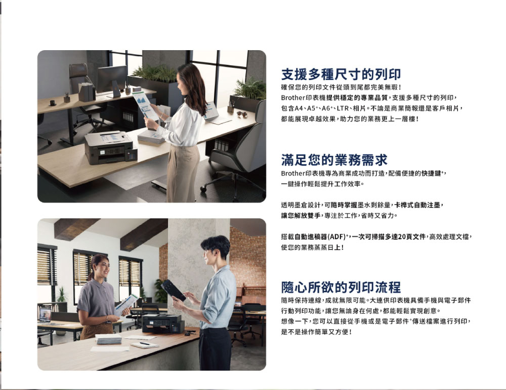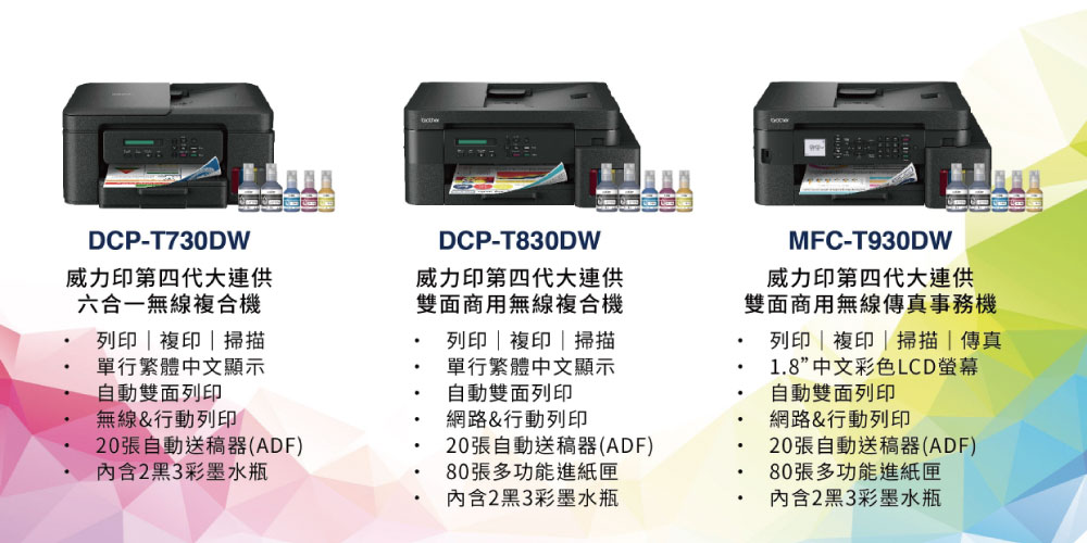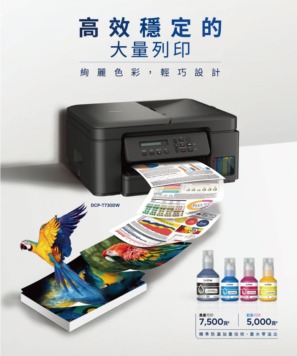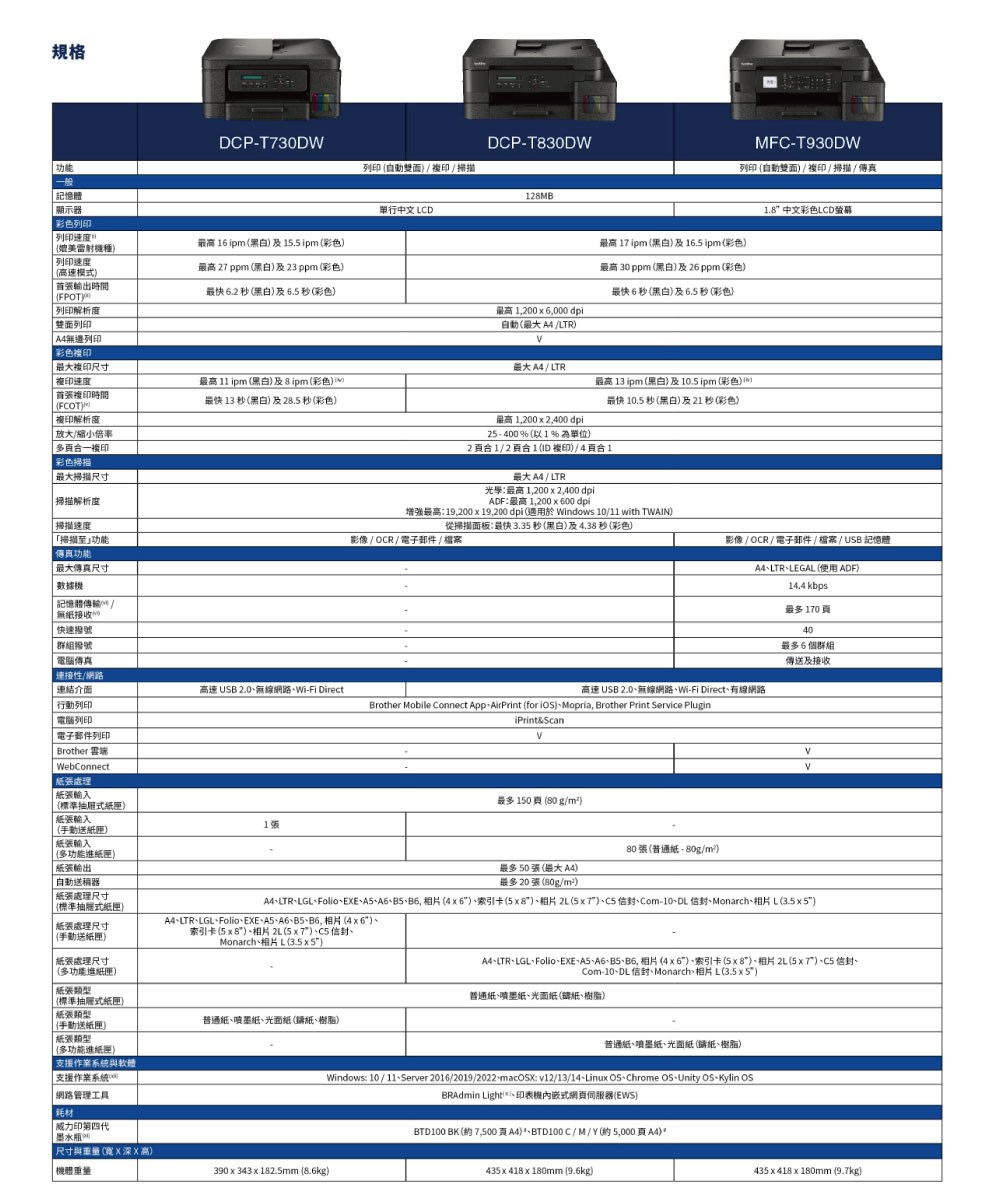 ※ 原廠墨水型號:黑 BTD100BK(寫真墨水 / 不防水)+ 彩 BT100C / M / Y(寫真墨水 / 不防水)