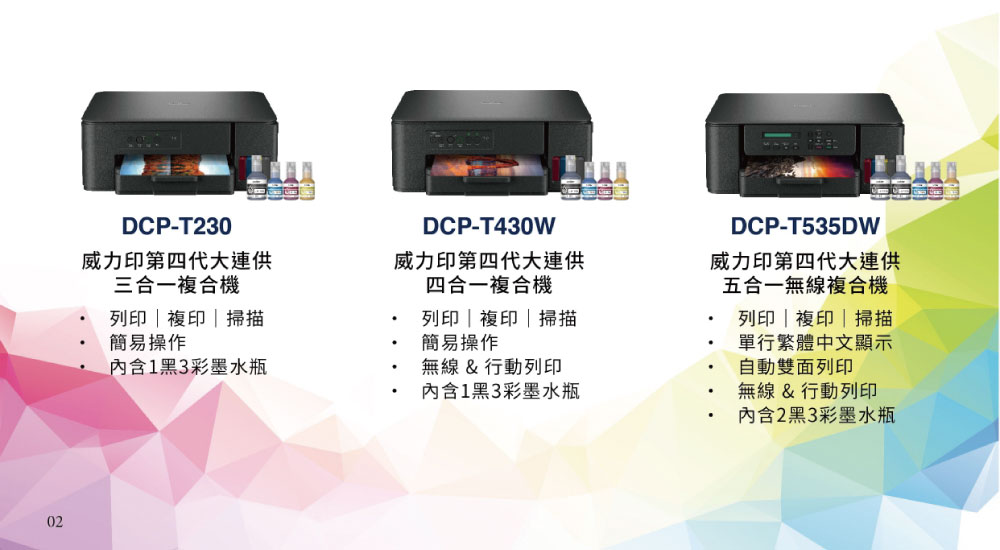 單功能:低階:PA2101CWX、中階:L3280CDW、高階:L8360CDW