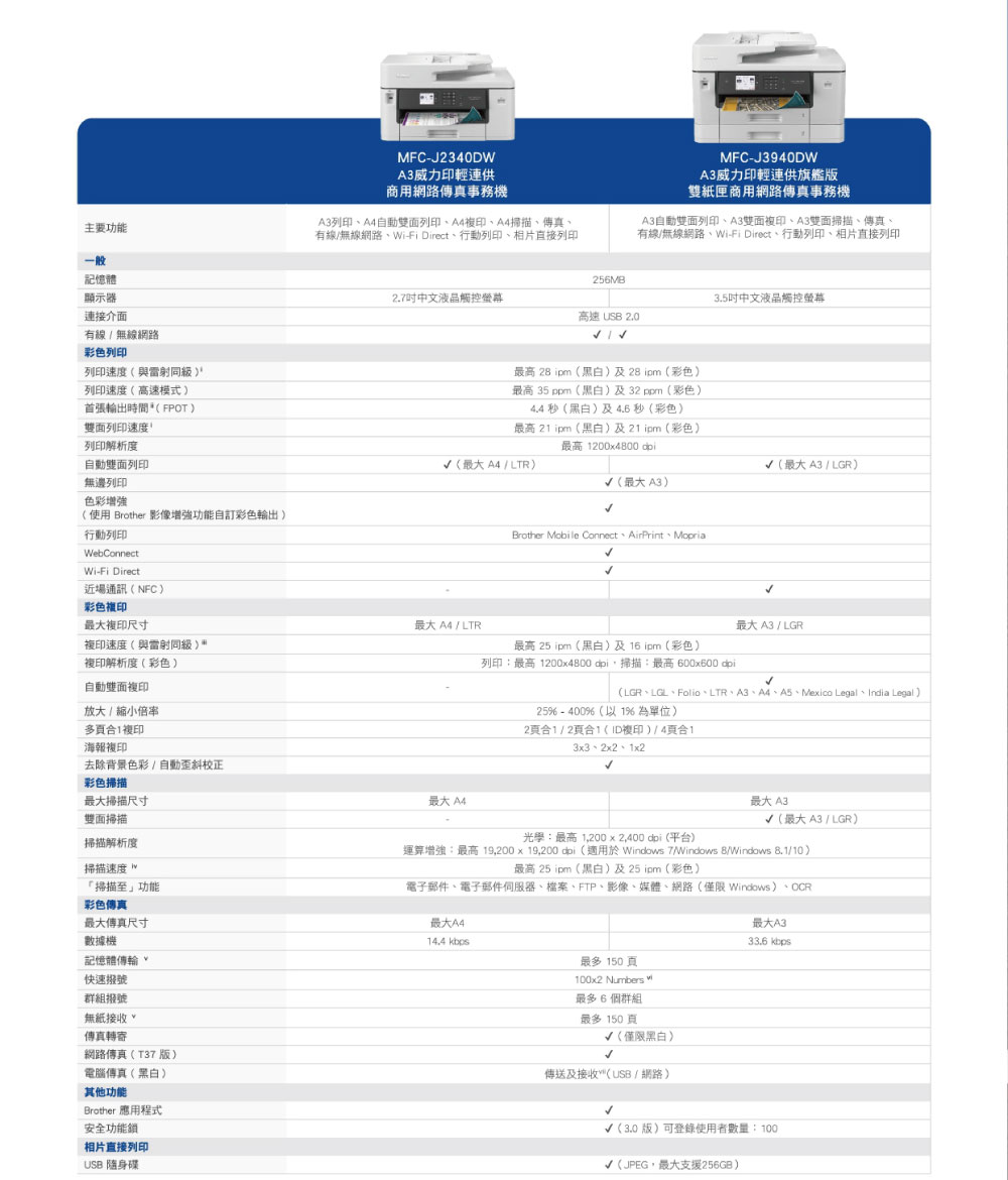 • A4影印 / A4掃描 / A4傳真/ADF/WiFi Direc/USB/行動列印/2.7吋螢幕/相片直接列印