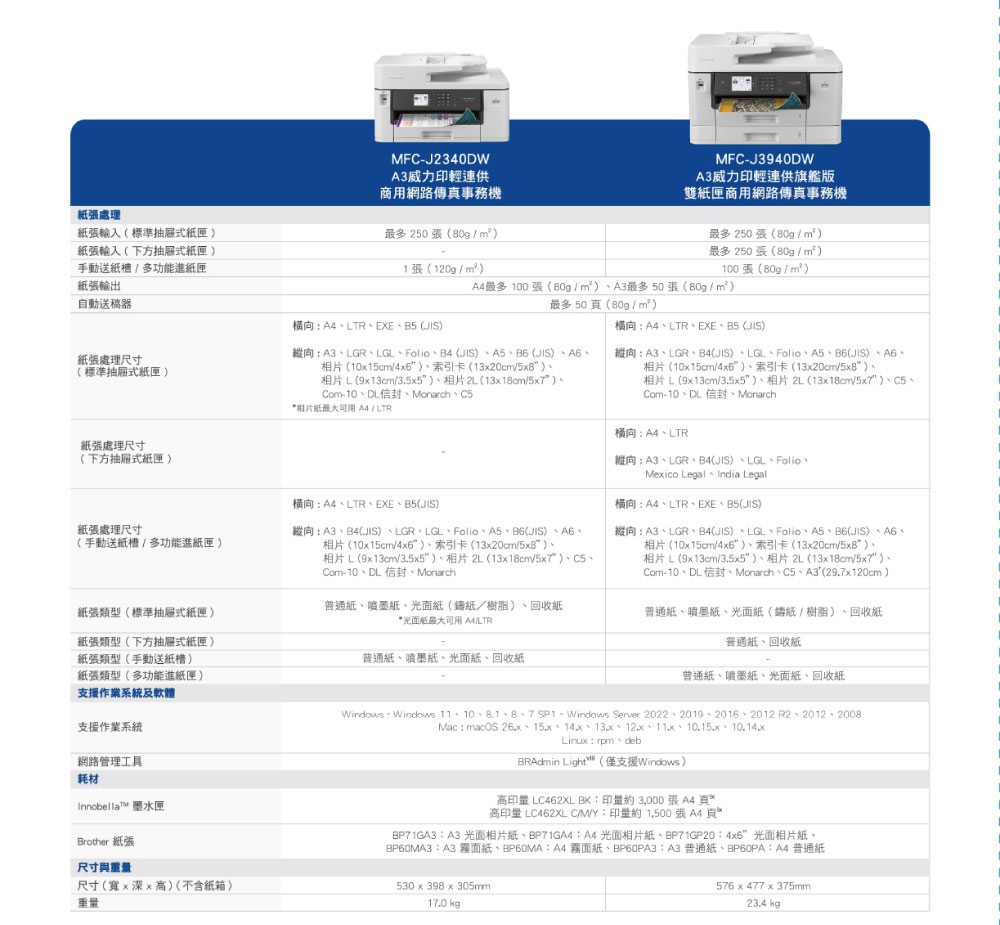 ※ 高容量墨水匣型號:黑 LC462XL BK(A4紙張5%覆蓋率 3000張)+ 彩 LC462XL C / M / Y(A4紙張5%覆蓋率 各1500張)