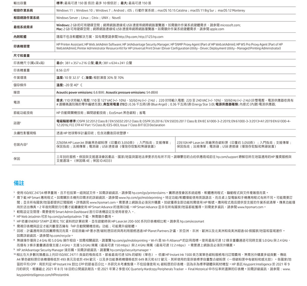 • 雙面列印速度(A4):最高 34 ipm