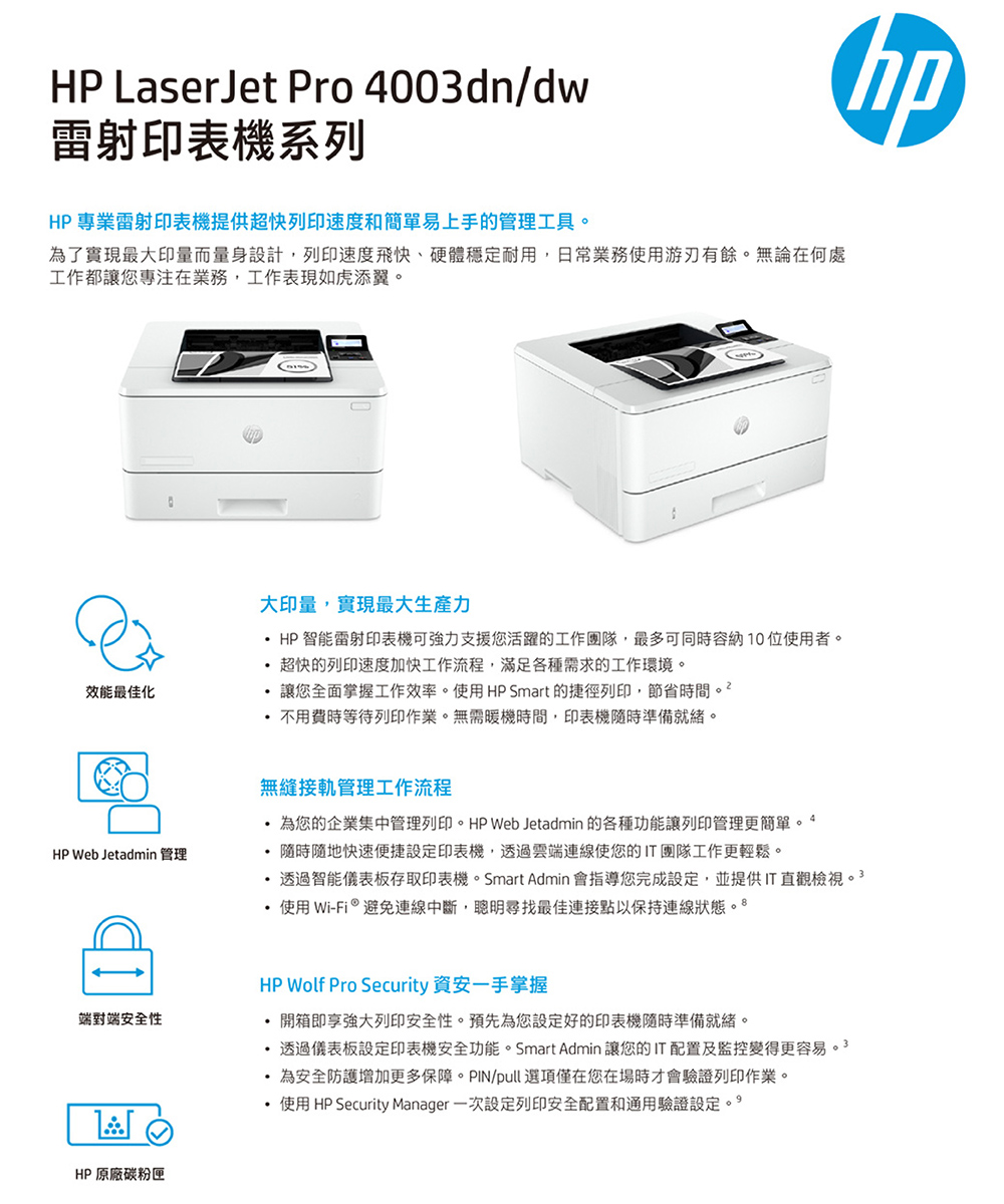 HP LaserJet Pro 4003dn 黑白雷射雙面印表機