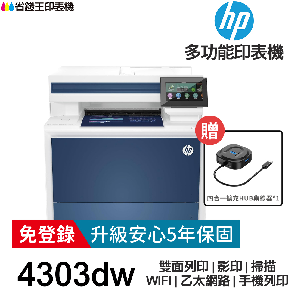① 4303dw 印表機 【含原廠碳粉匣+原廠5年保固】