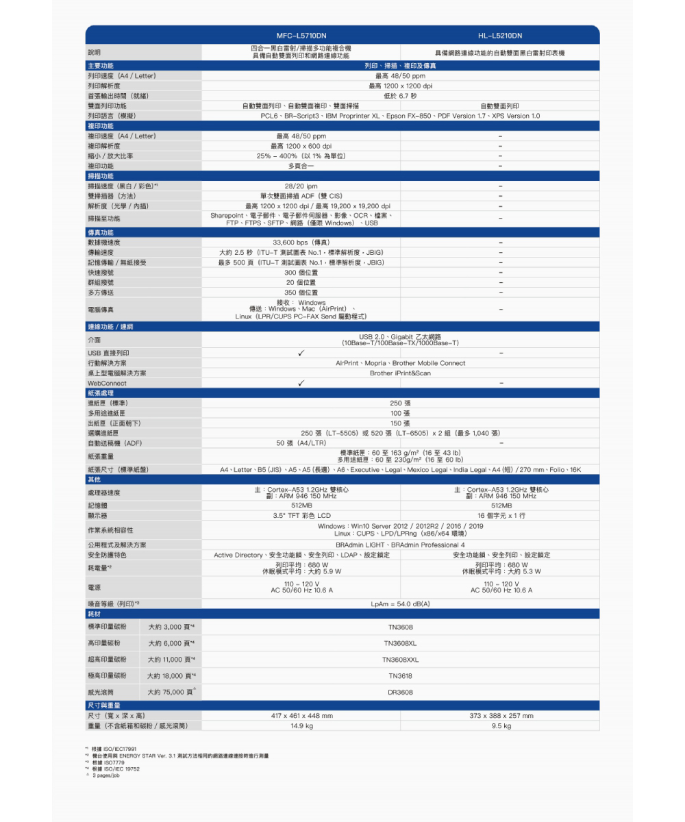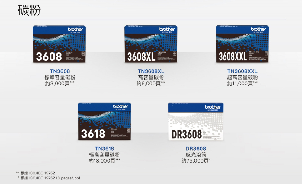 ※ 使用碳粉匣型號:TN-3608 / TN-3608XL / TN-3608XXL / TN3618