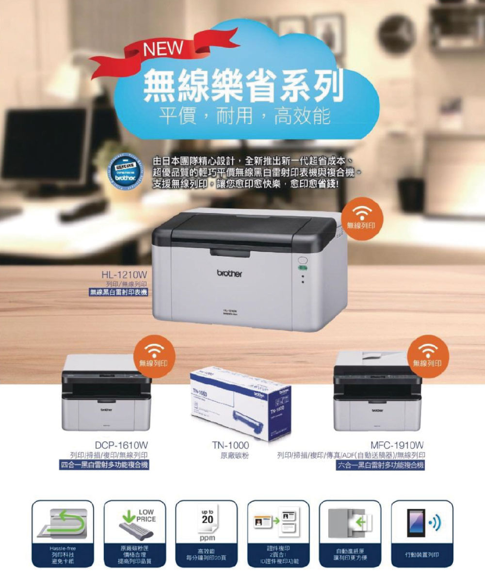 ※ 使用碳粉匣型號:TN1000、TN1000H