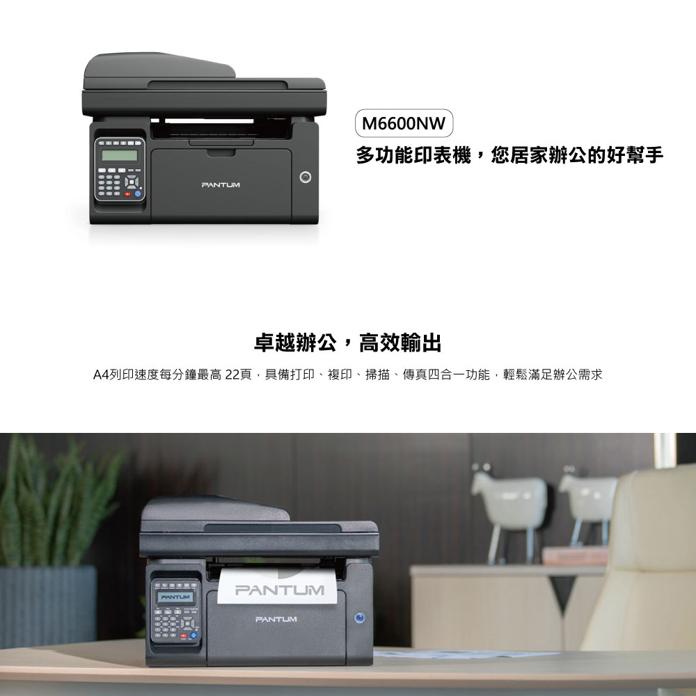 PANTUM 奔圖 M6600NW 黑白雷射傳真印表機 【含原廠碳粉匣】