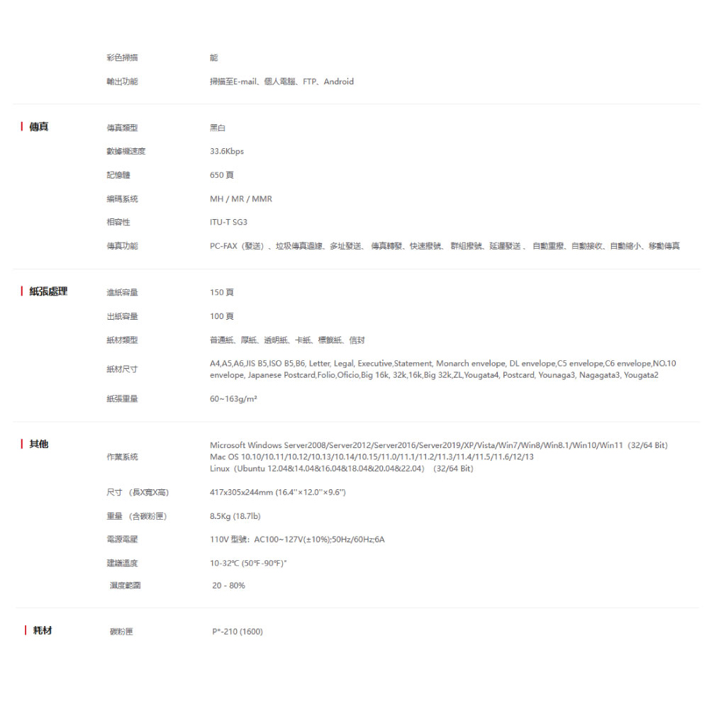 列印|影印|彩色掃描|傳真|ADF連續進紙|WIFI|乙太網路|手機列印|手機掃描|手機傳真