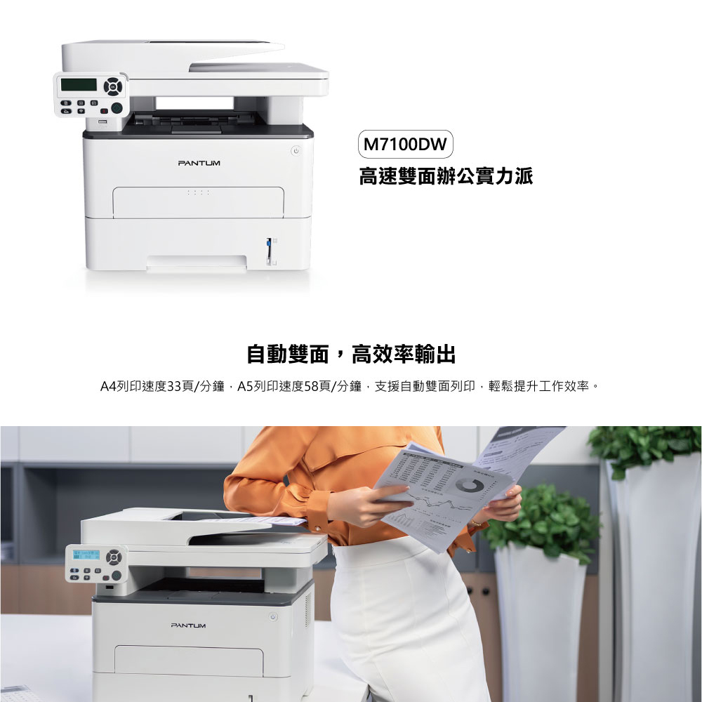 PANTUM 奔圖 M7100DW 雙面黑白雷射多功能印表機