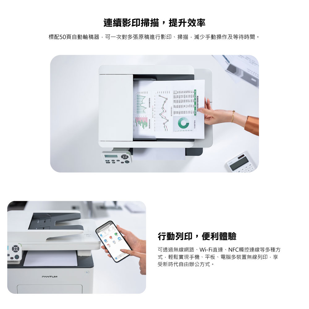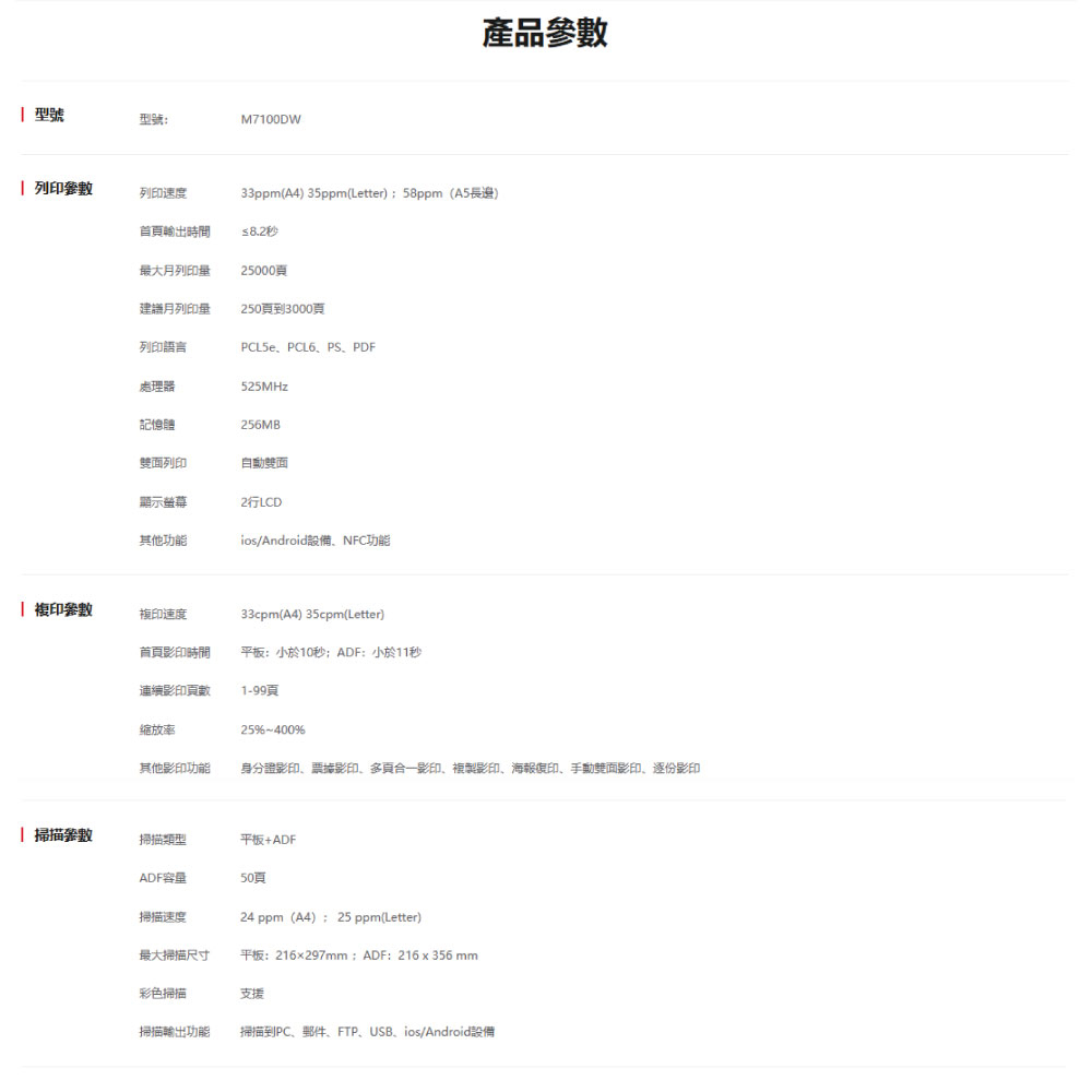 自動雙面列印|乙太網路|WIFI列印|手機列印|多功能紙匣|256MB記憶體|ADF連續進紙
