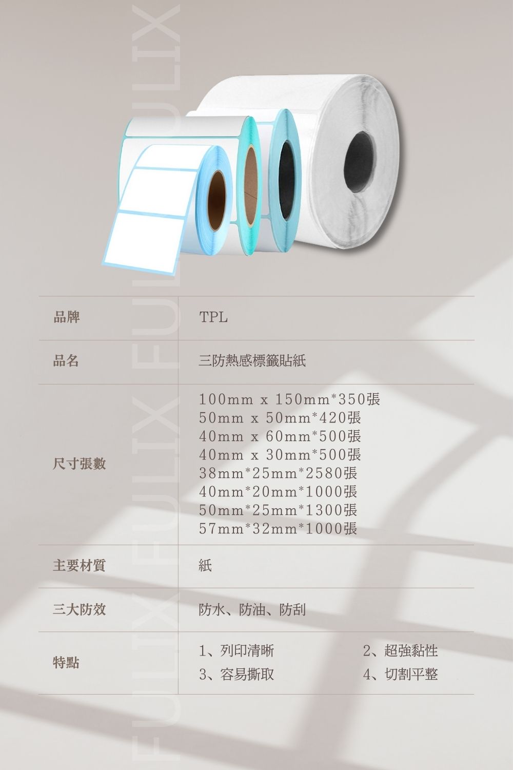 ③ 熱感應標籤貼紙 40x60mm*500張 /單捲 也適用POS機出單